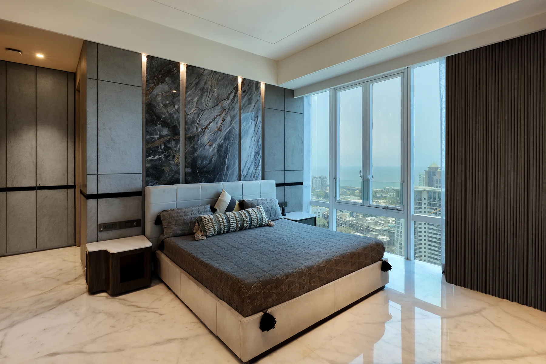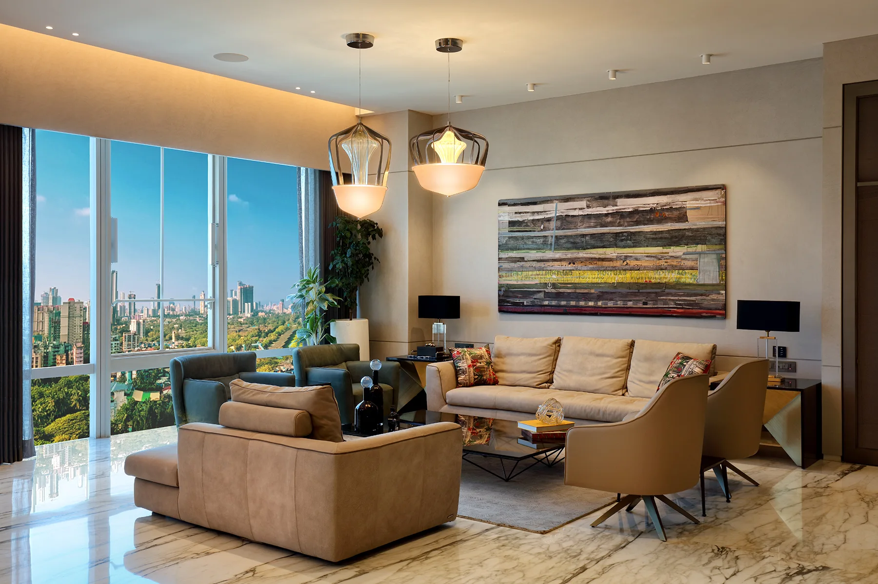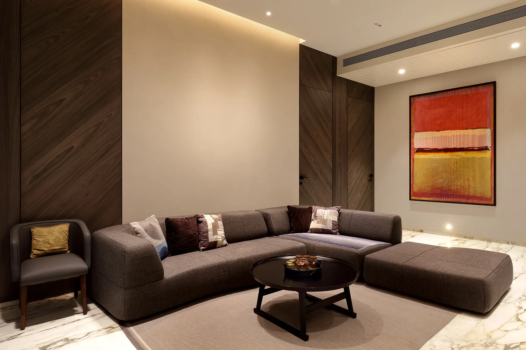 This 5000-square-foot home, located in the prestigious area of Worli, epitomizes the essence of minimalist design, offering a serene and functional living space. The design emphasizes simplicity, clean lines, and a neutral color palette, creating a tranquil and uncluttered environment. The meticulously crafted floor plan maximizes open space, ensuring a seamless flow between different areas of the home. Throughout the space, high-quality materials are thoughtfully integrated, enhancing both its aesthetic appeal and functional aspects.