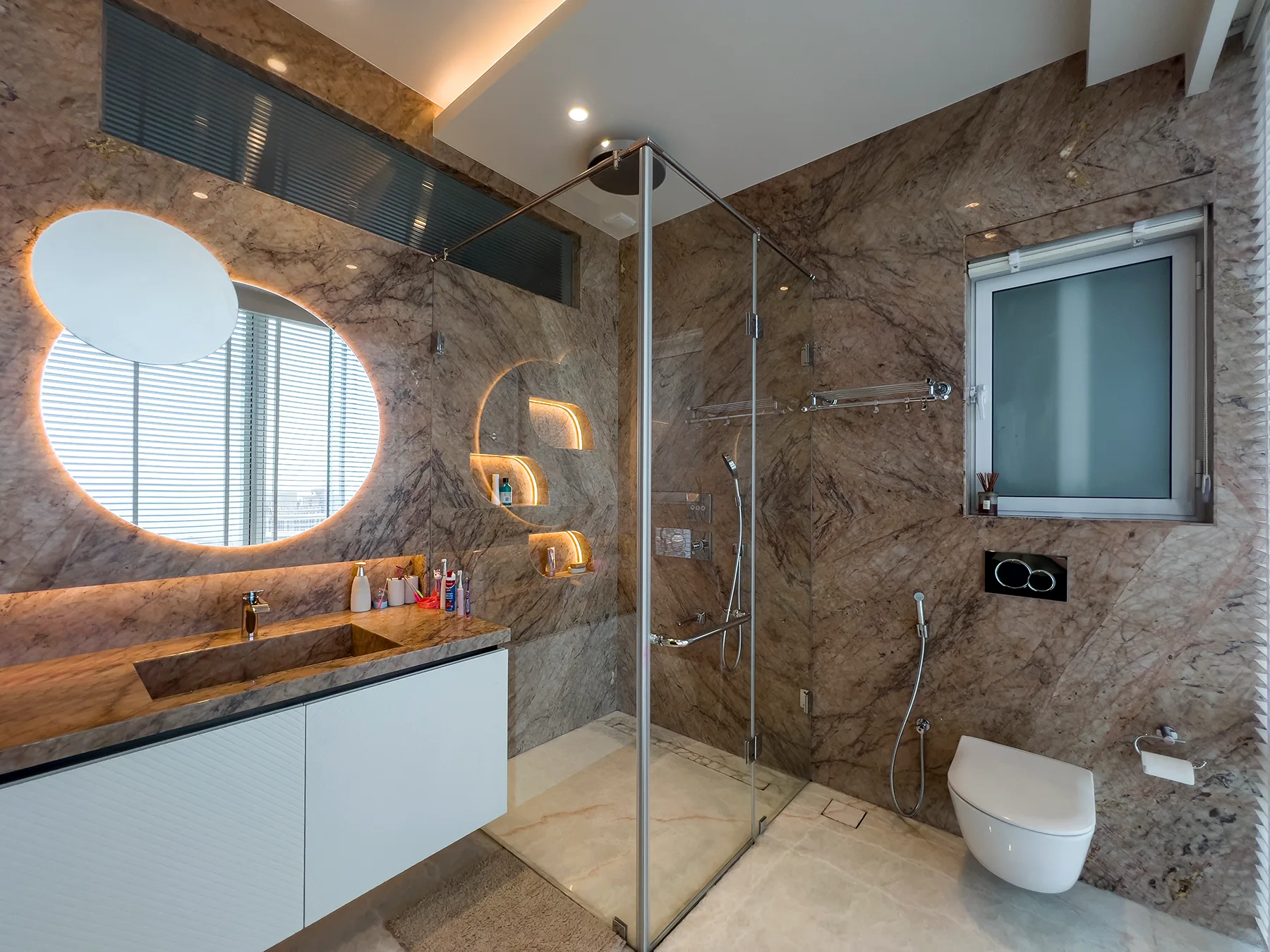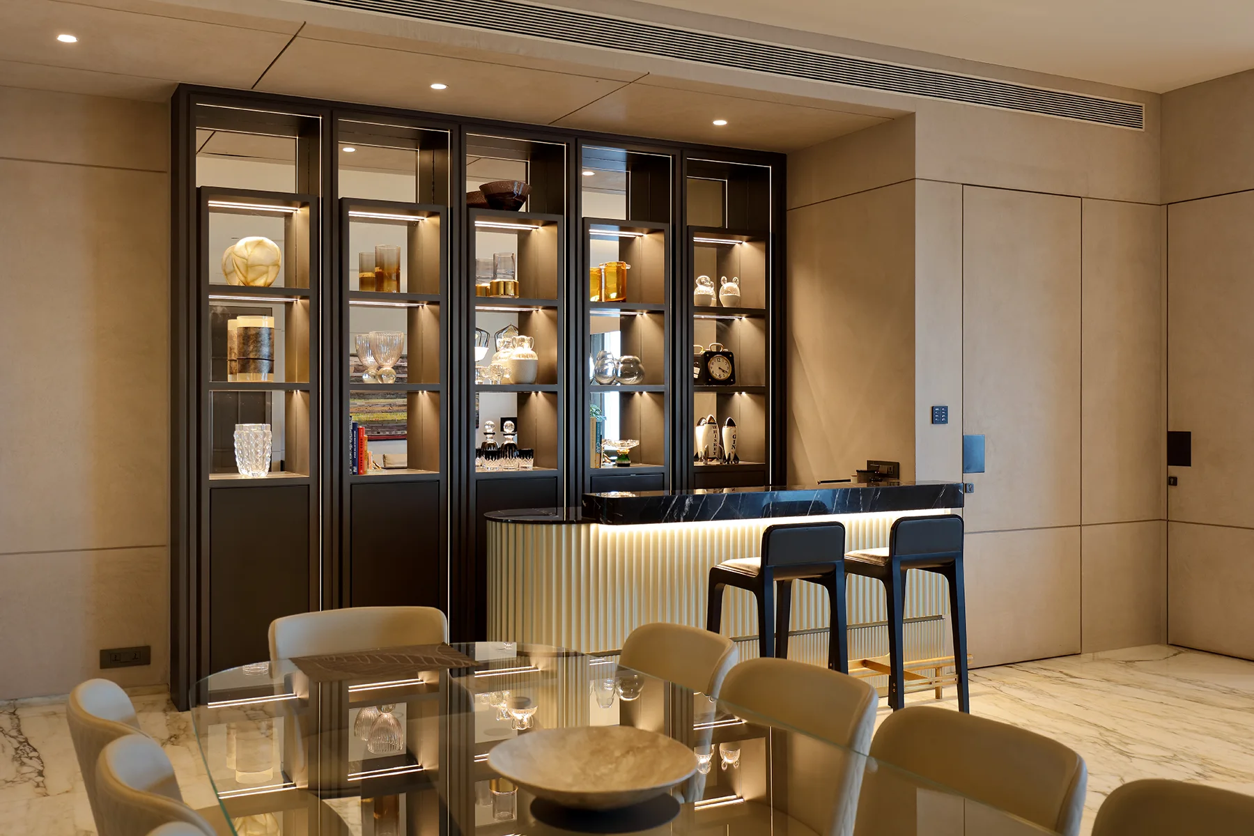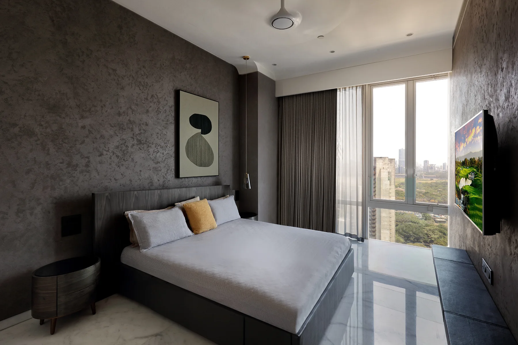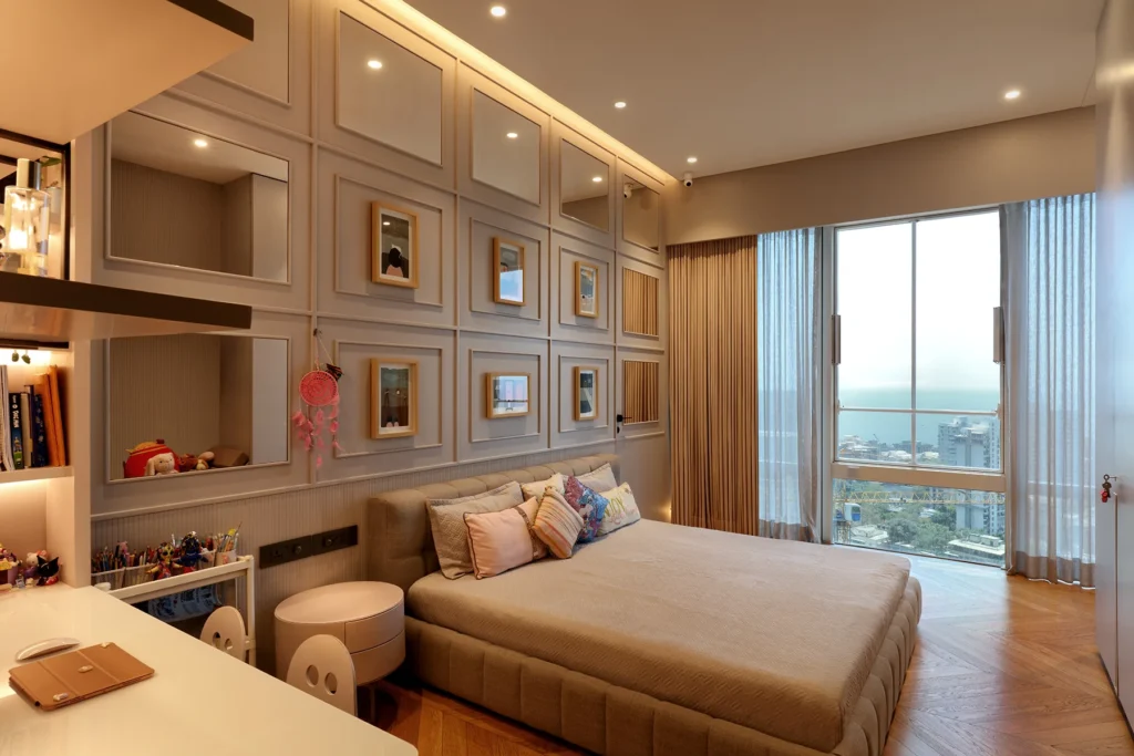 This 5000-square-foot home, located in the prestigious area of Worli, epitomizes the essence of minimalist design, offering a serene and functional living space. The design emphasizes simplicity, clean lines, and a neutral color palette, creating a tranquil and uncluttered environment. The meticulously crafted floor plan maximizes open space, ensuring a seamless flow between different areas of the home. Throughout the space, high-quality materials are thoughtfully integrated, enhancing both its aesthetic appeal and functional aspects.